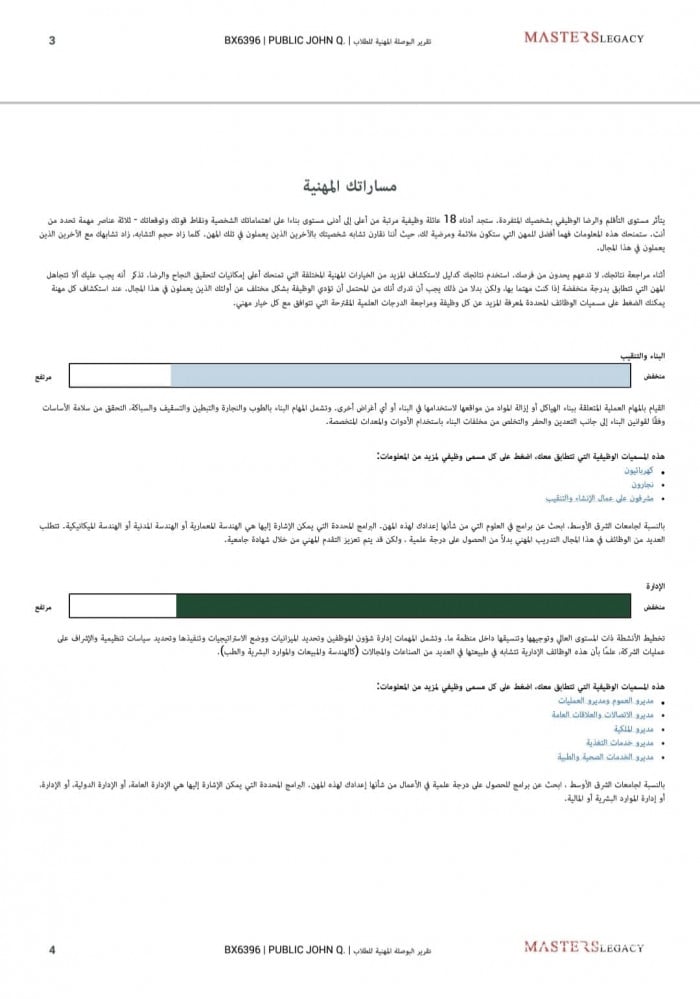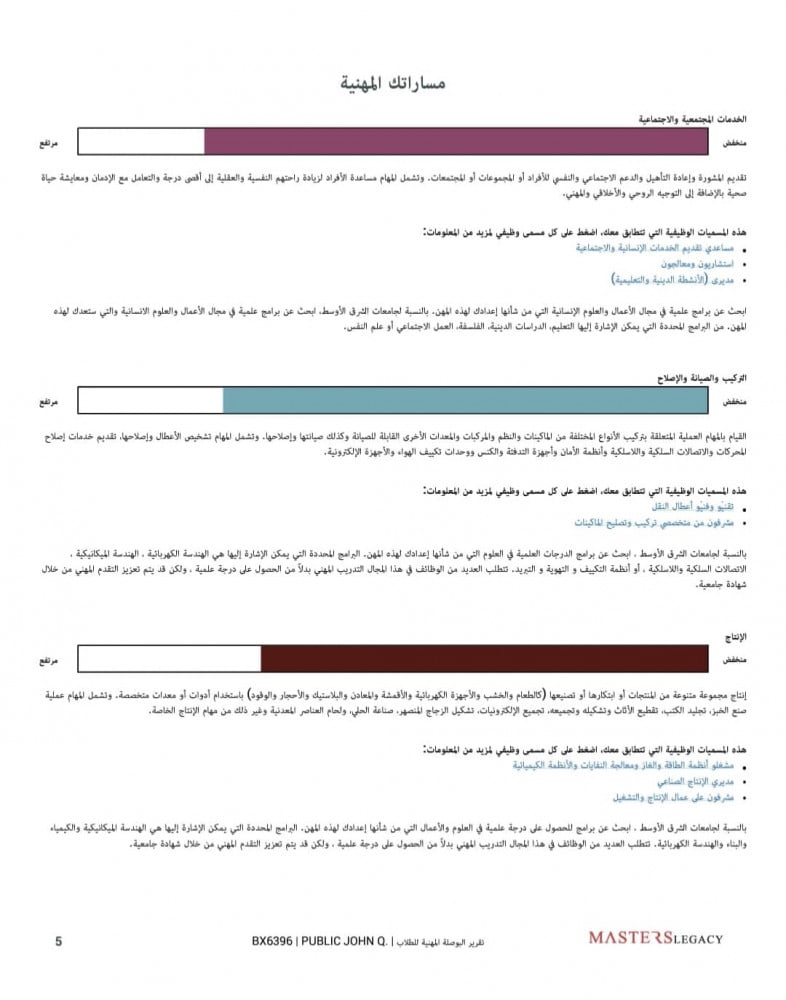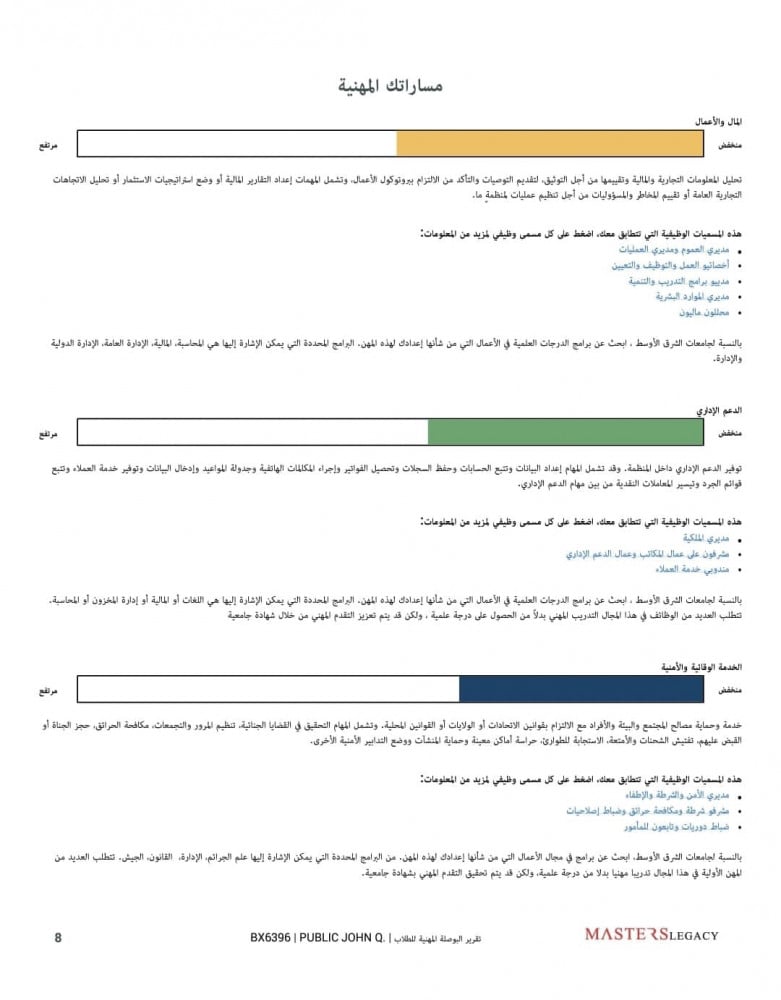 - المسارات الدراسية الملائمة لك بناءً على نقاط قوتك، ويتدرج عرض المسارات من الأكثر ملائمة لك إلى الأقل.
