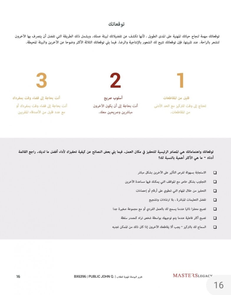 - توقعاتك، والمصادر الرئيسية لتحفيز أداء أفضل ما لديك.