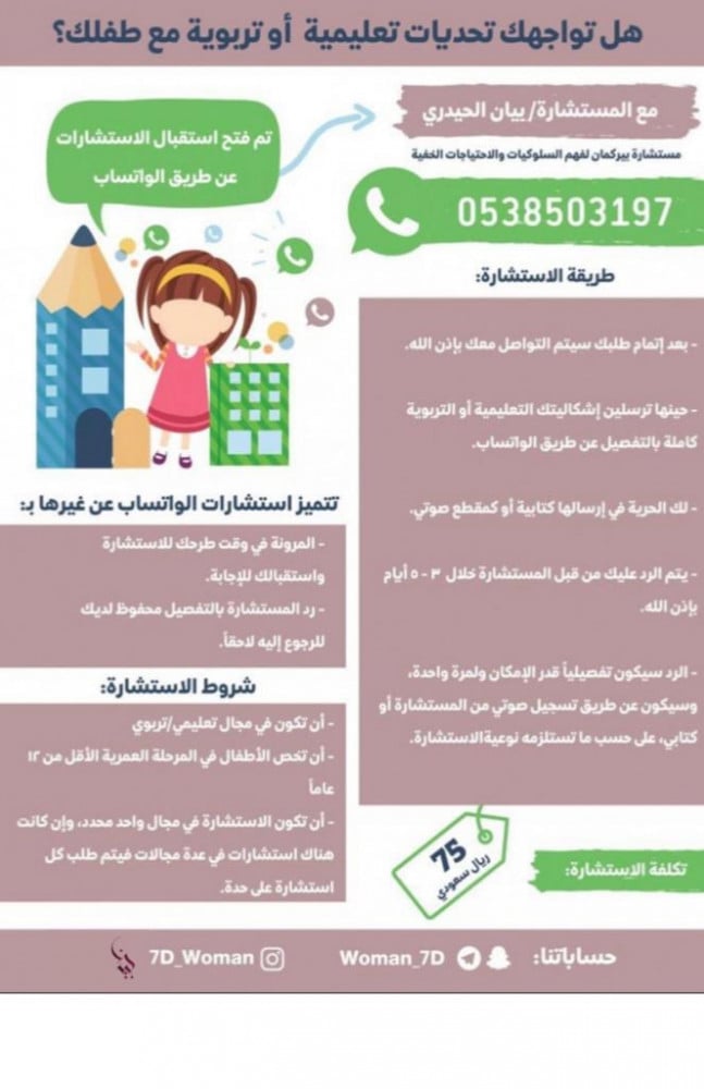 - حينها ترسلين إشكاليتك التعليمية أو التربوية كاملة بالتفصيل عن طريق الواتساب.