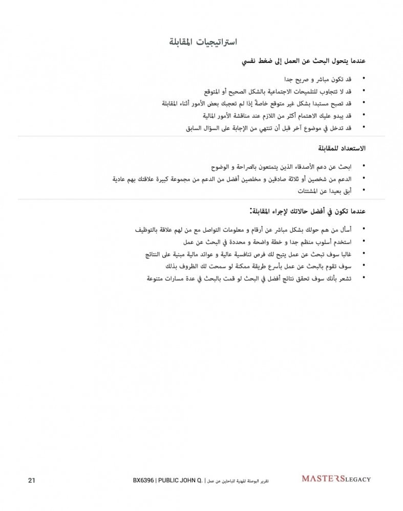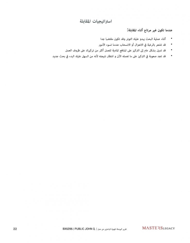 - استراتيجيات المقابلة الوظيفية: وعي ذاتي بالطريقة التي تؤدي فيها مقابلاتك الوظيفية ونصائح لتحسين أدائك.