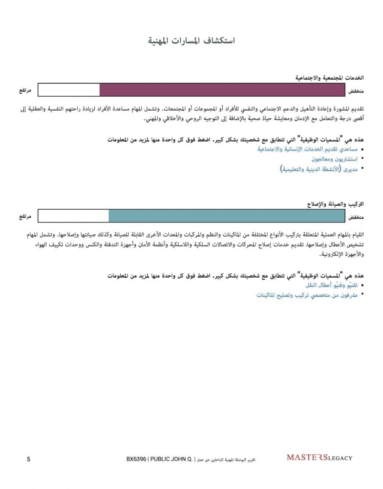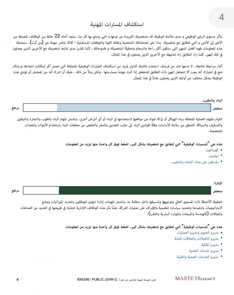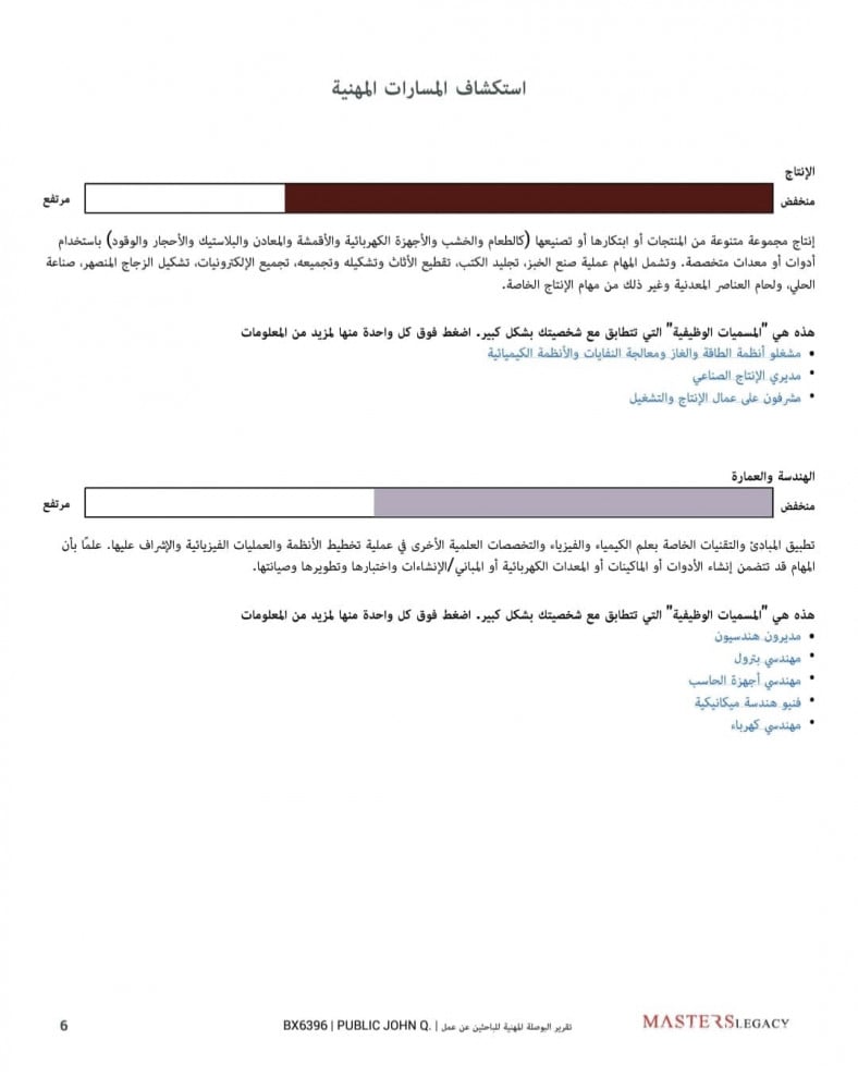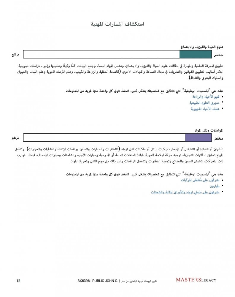 - المسارات المهنية الملائمة لك بناءً على نقاط قوتك، ويتدرج عرض المسارات من الأكثر ملائمة لك إلى الأقل.