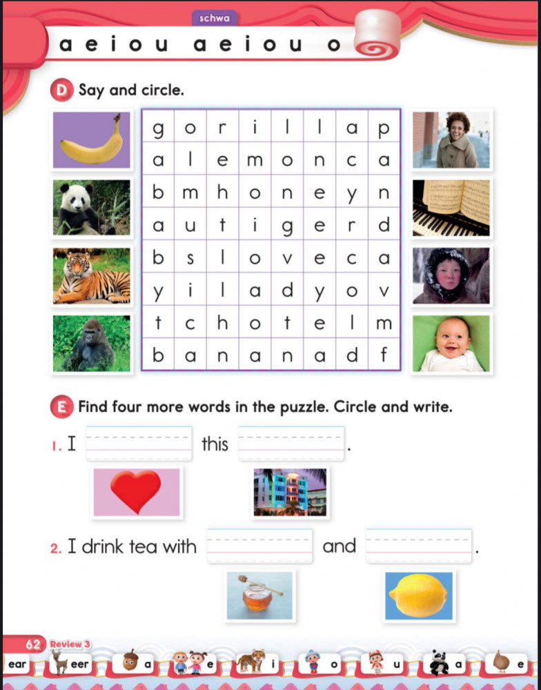 📍لاحظنا من تجربتنا مع السلسلة أيضاً أنها تساعد في تحسين الخط لدى الطفل لأن العديد من الأنشطة تعتمد على الكتابة وهذا يزيد من ممارسته للكتابة الإنجليزية.